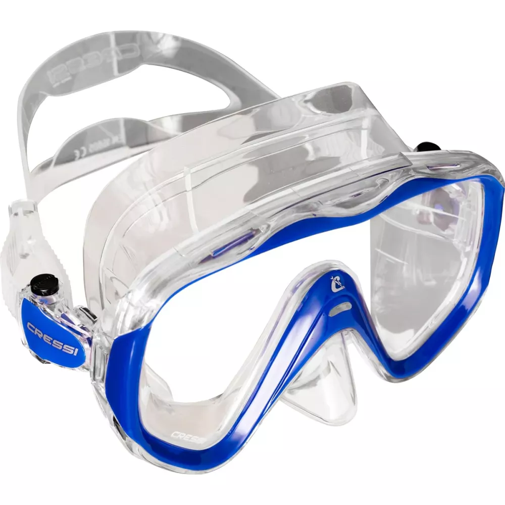 For bigger, rounder faces. The Liberty gives the diver a wide, unobstructed field of vision while snorkeling or scuba diving. It features one large lens to offer divers a phenomenal field of vision. The lens is made of tempered glass for safety. The skirt is made of hypoallergenic soft silicone, anatomically designed, to ensure a perfect seal. The mask is equipped with easy-to-use buckles for immediate length strap adjustment. Mask has an easy-to-reach, one-hand nose pocket for ear equalization, which can be utilized even when wearing thick gloves. The double feathered edge silicone skirt works in concert with the split strap for an excellent seal on the face. The exclusive painted, coated frame brings a cool tech design style.