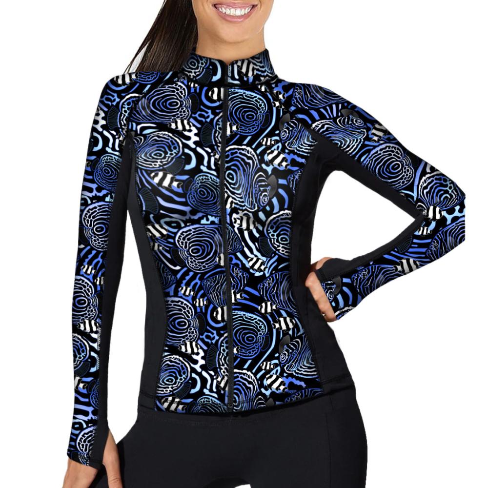 WOMENS ZIP RASH GUARD ANGELFISH HYPNOSIS L